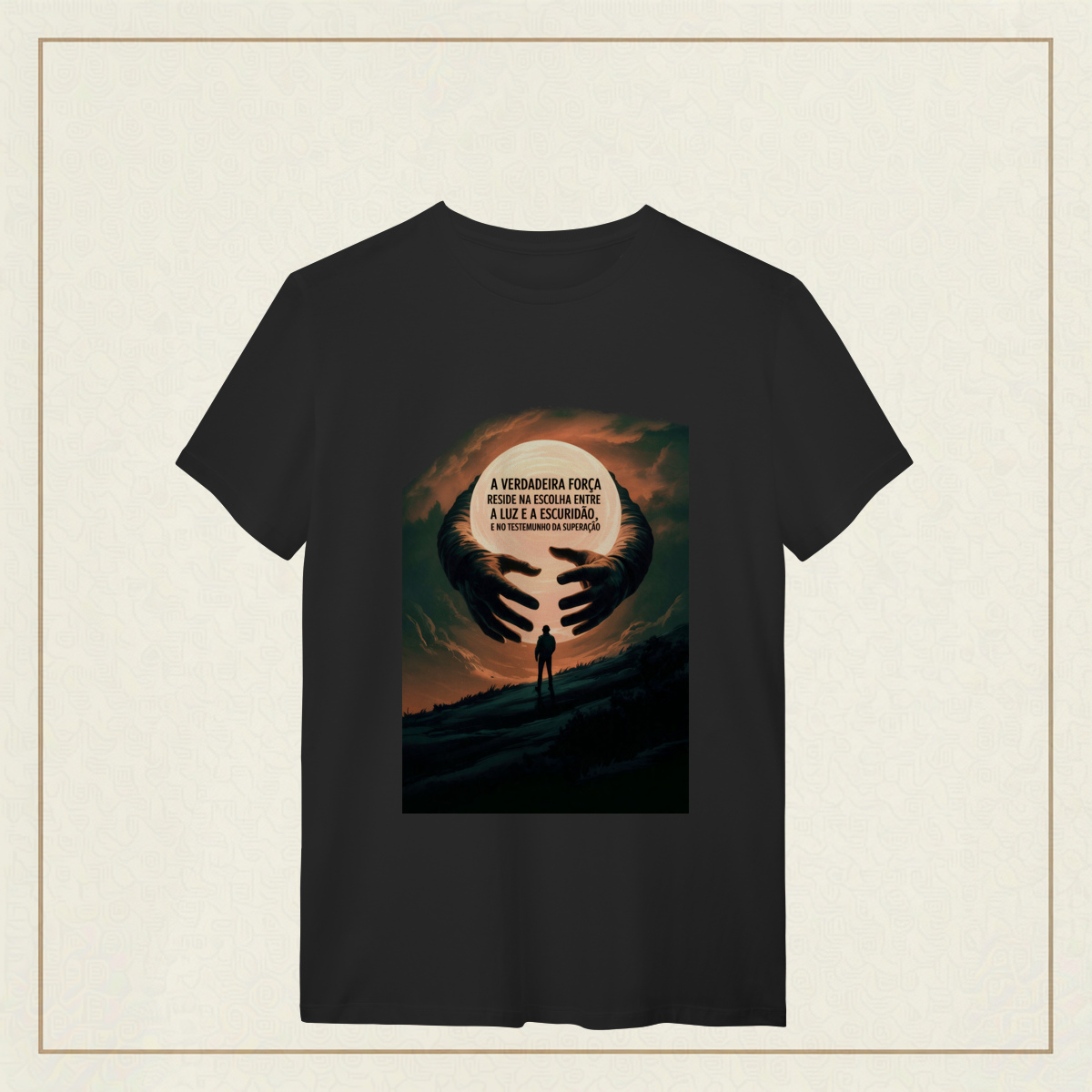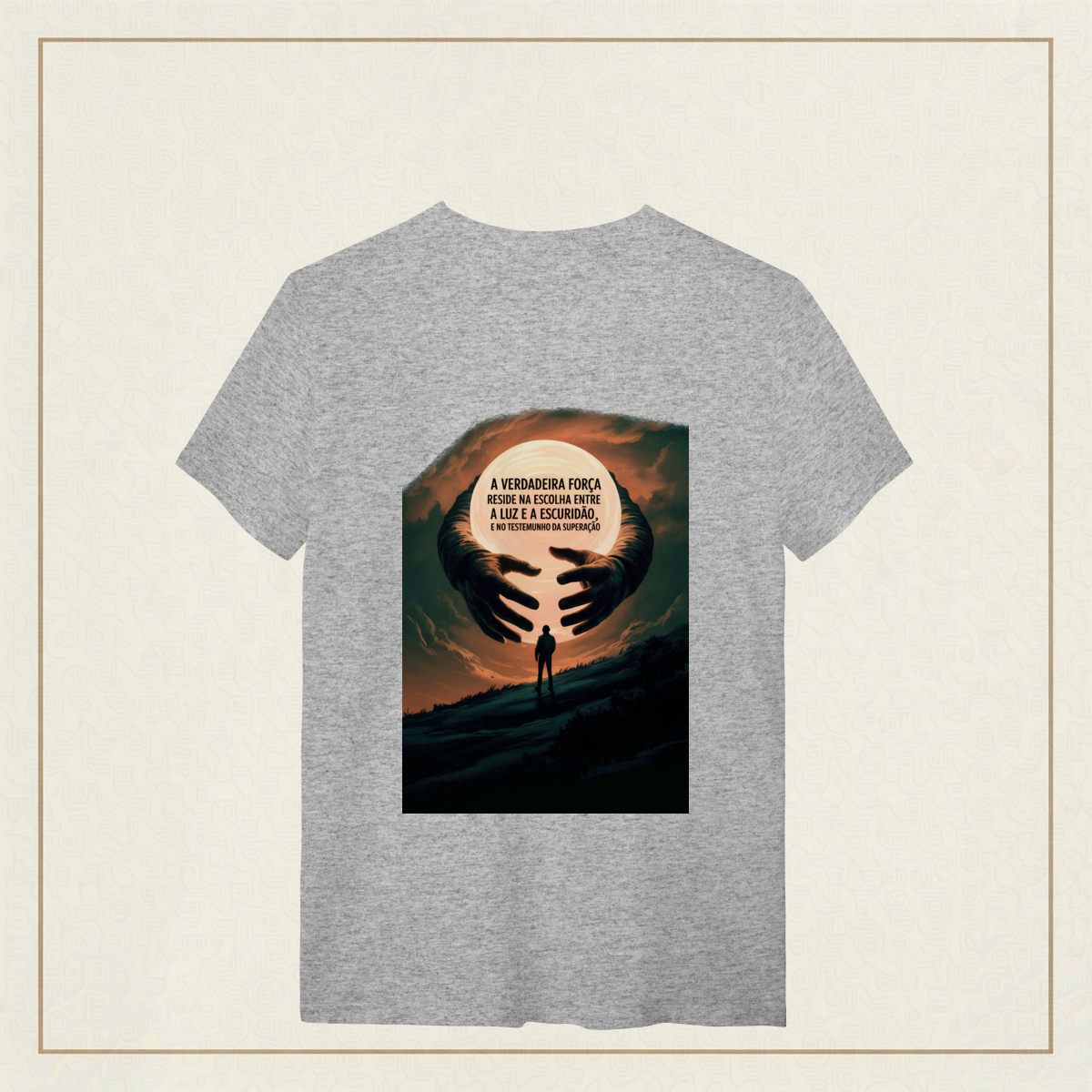 Quando tudo ao redor se confunde entre sombras e incertezas, é no íntimo da alma que a verdadeira batalha acontece. Nesta arte intensa e simbólica, a luz é envolta por mãos que parecem tanto proteger quanto prender. A figura solitária, diante dessa força dual, representa cada um de nós: Diante da escolha entre a luz e a escuridão. Porque a verdadeira força reside ali, no ato de escolher, mesmo quando tudo parece obscuro.