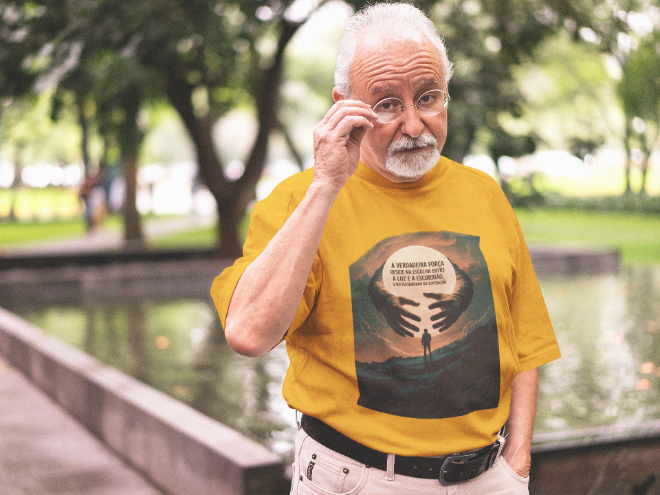 Cores do produto: Como cada tela de computador ou celular tem seu próprio jeito de mostrar cores, então a cor da sua camiseta e da estampa pode ser um pouco diferente do que você viu online.