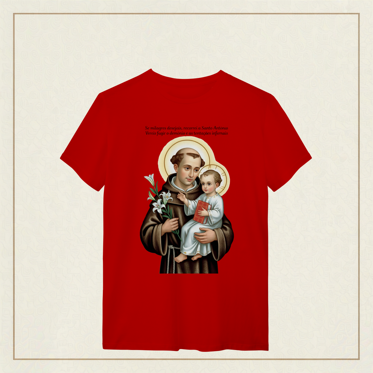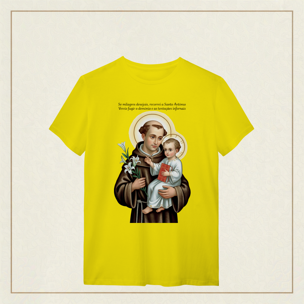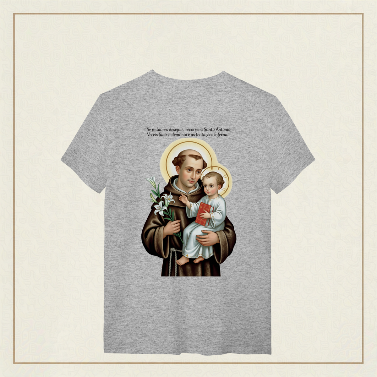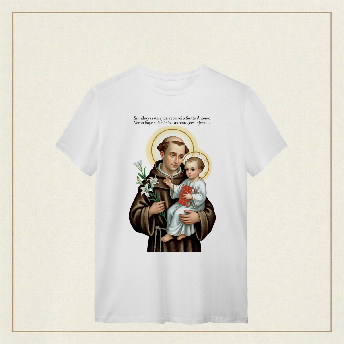 Santo Antônio, com olhar sereno e o Menino Jesus nos braços, nos lembra que o verdadeiro milagre é confiar. Em meio às aflições, ele intercede por nós, guiando nossos passos com ternura e fé.
